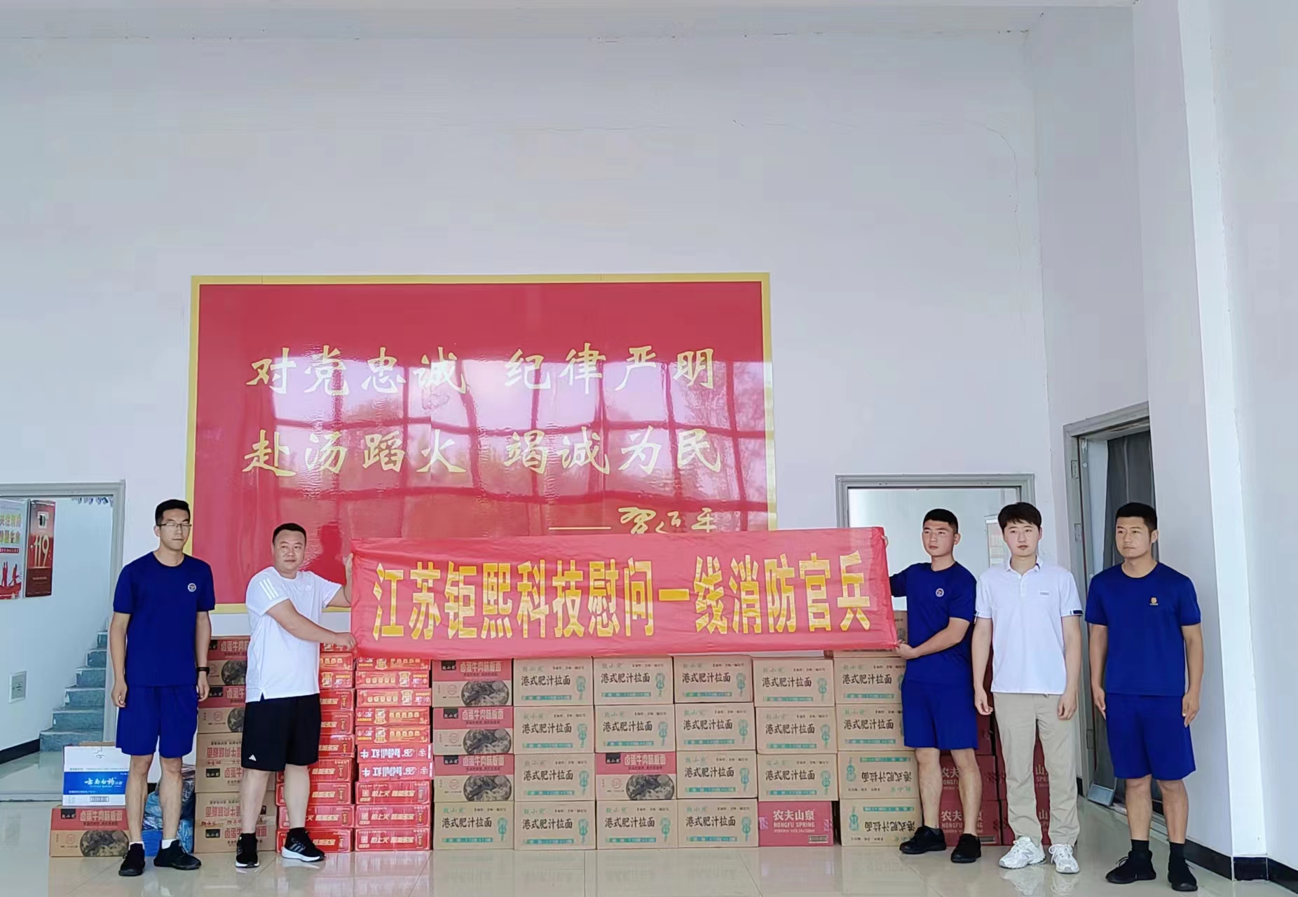 为庆祝建军节的到来,江苏钜熙矿用设备科技有限公司在建军节当日组织了一场慰问军人活动,给一线消防官兵们送去了凉茶、矿泉水等降暑物资,还参观了他们平时的工作环境,深刻感受到了消防官兵们的辛苦。江苏钜熙向他们表达最诚挚的敬意与问候,用实际的关爱行动致敬消防官兵的辛勤付出。